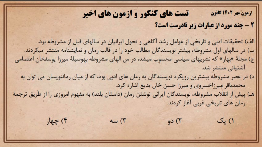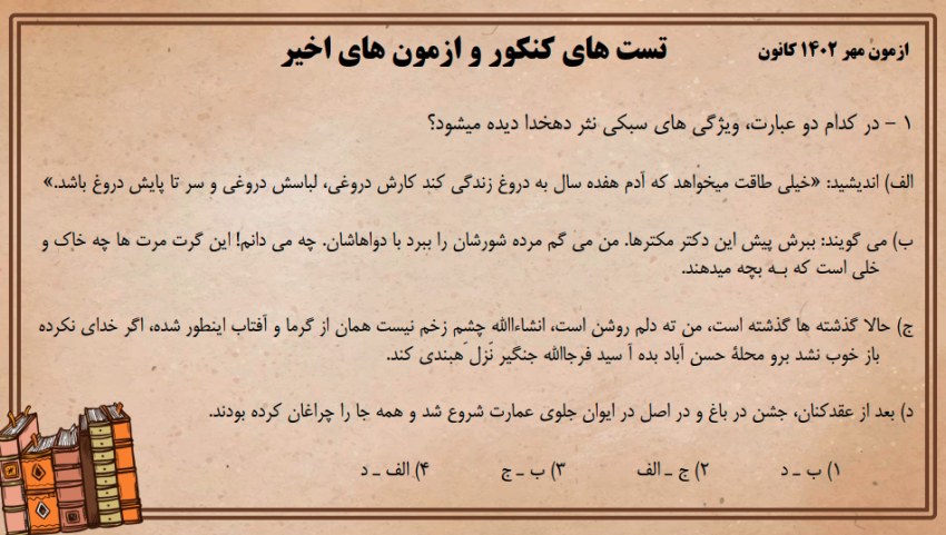2- 5 تست شناسنامه دار از ازمون و کنکور این مبحث در سالیان اخیر