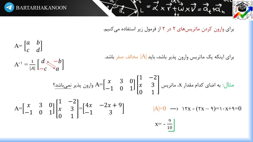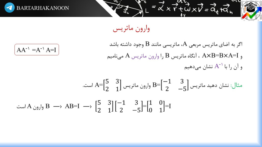 درسنامه ماتریس وارون نیز به این شکل است.