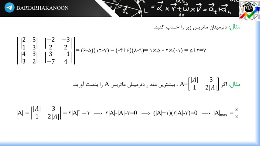 درسنامه دترمینان به صورت زیر است.