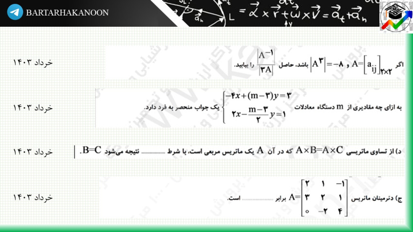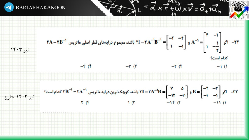 و در آخر نیز، چهار تست از کنکورهای 1403 و 1402 از این مبحث برای شما قرار دادیم.