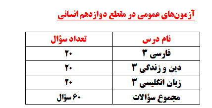 دروس عمومی در مقطع دوازدهم، جداگانه در روزهای پنجشنبه – روز قبل از آزمون اصلی- و به صورت آنلاین برگزار میشود.