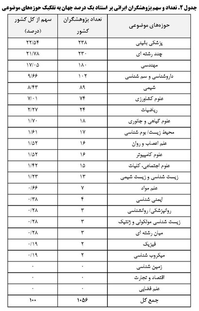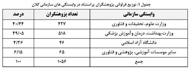 سهم نهادهای علم و فناوری کشور از پژوهشگران پراستناد یک درصد برتر جهان