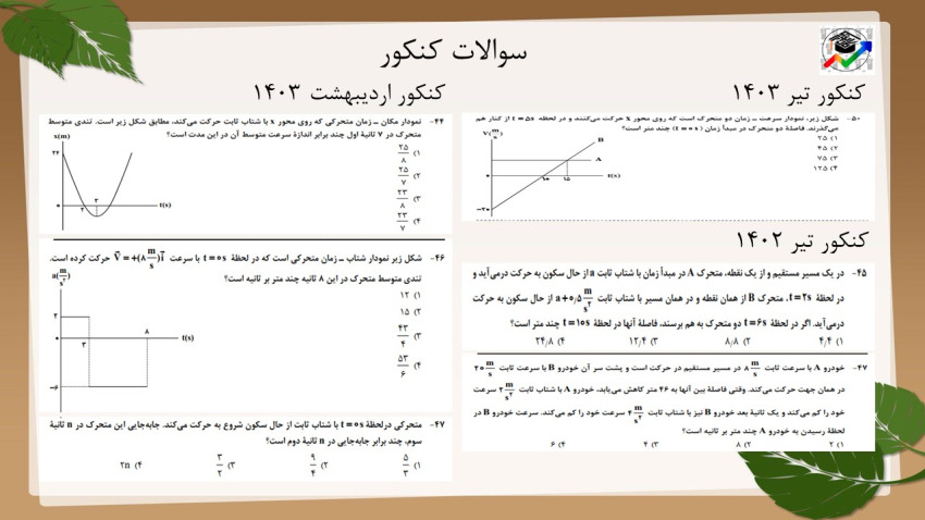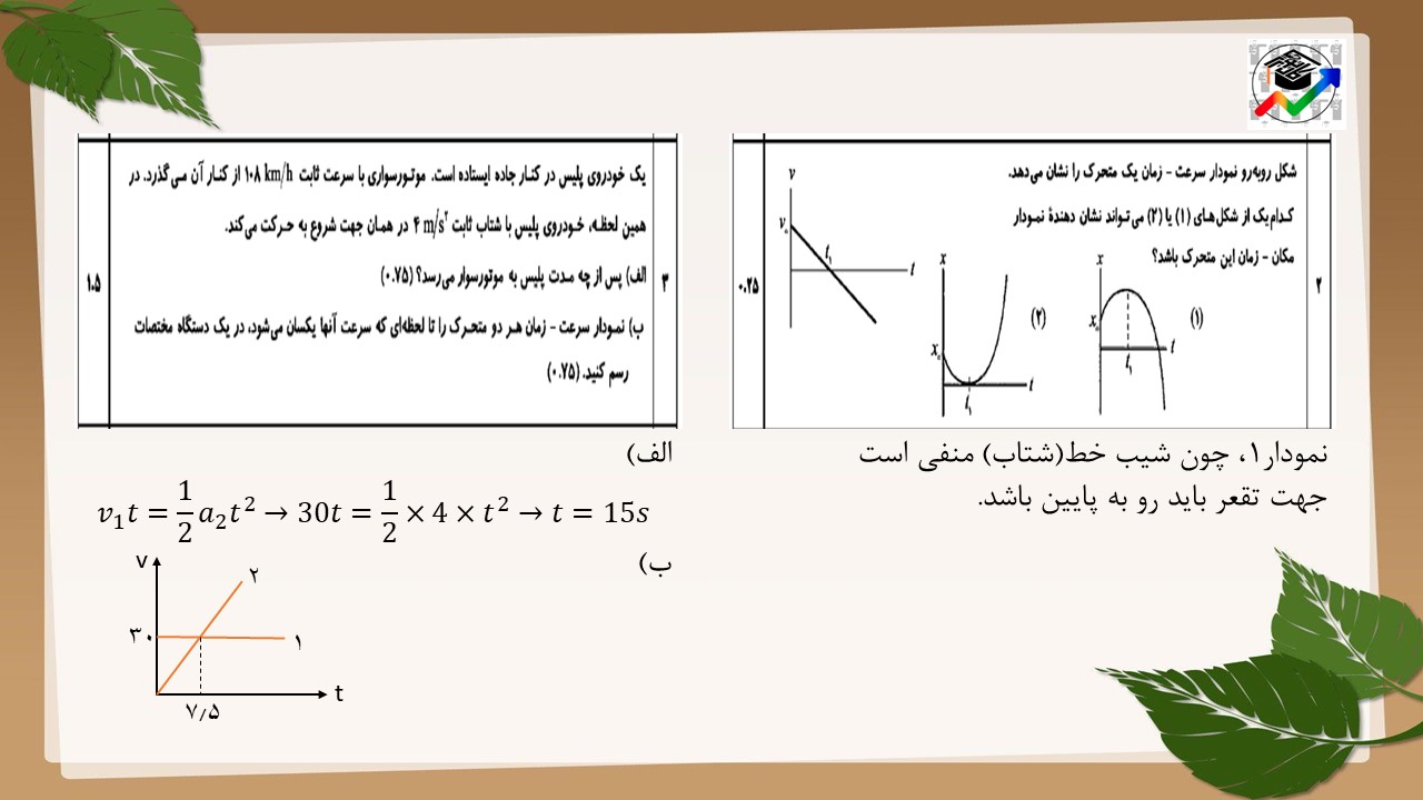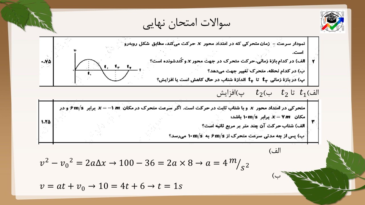 در ابتدا سوالاتی که از این بخش از فصل حرکت بر خط راست در امتحان نهایی آمده است را میبینیم.