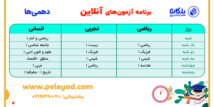 آزمون های هفتهی اول نیمی از برنامهی دو هفتهای کانون و آزمونهای هفتهی دوم کل برنامهي دو هفته را درهر درس دربر میگیرد.