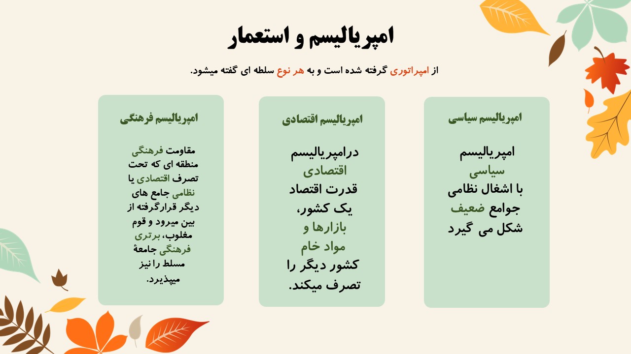 امپراتوری و شاهنشاهی از طریق 1.کشورگشایی 2. قدرت نظامی 3.حضور مستقیم سربازان پیروز شکل میگیرد.