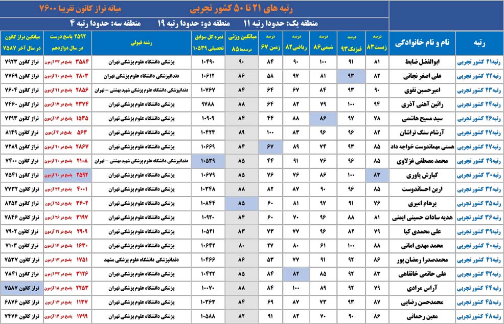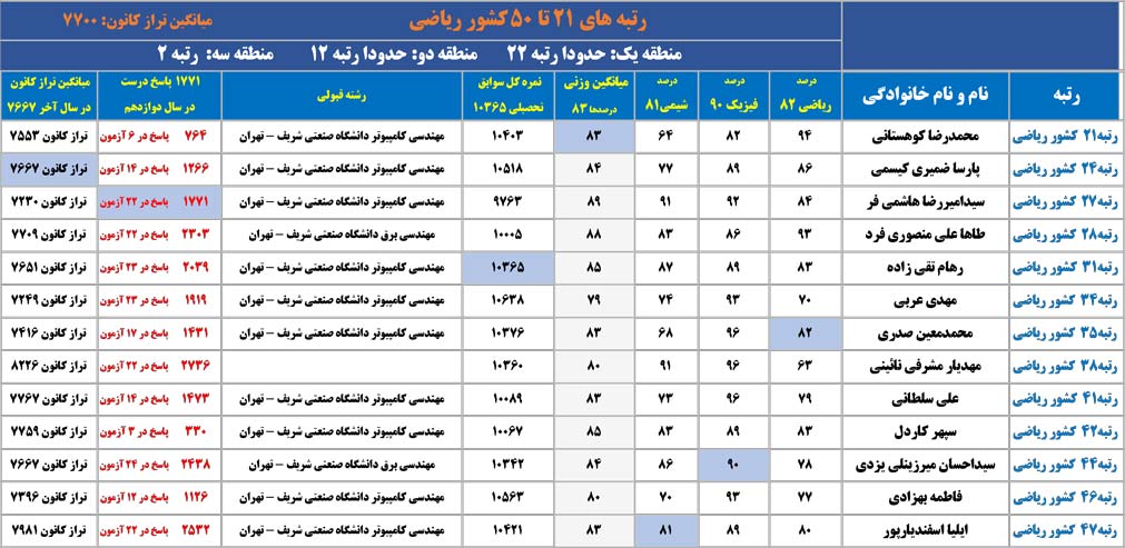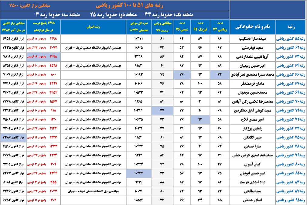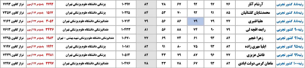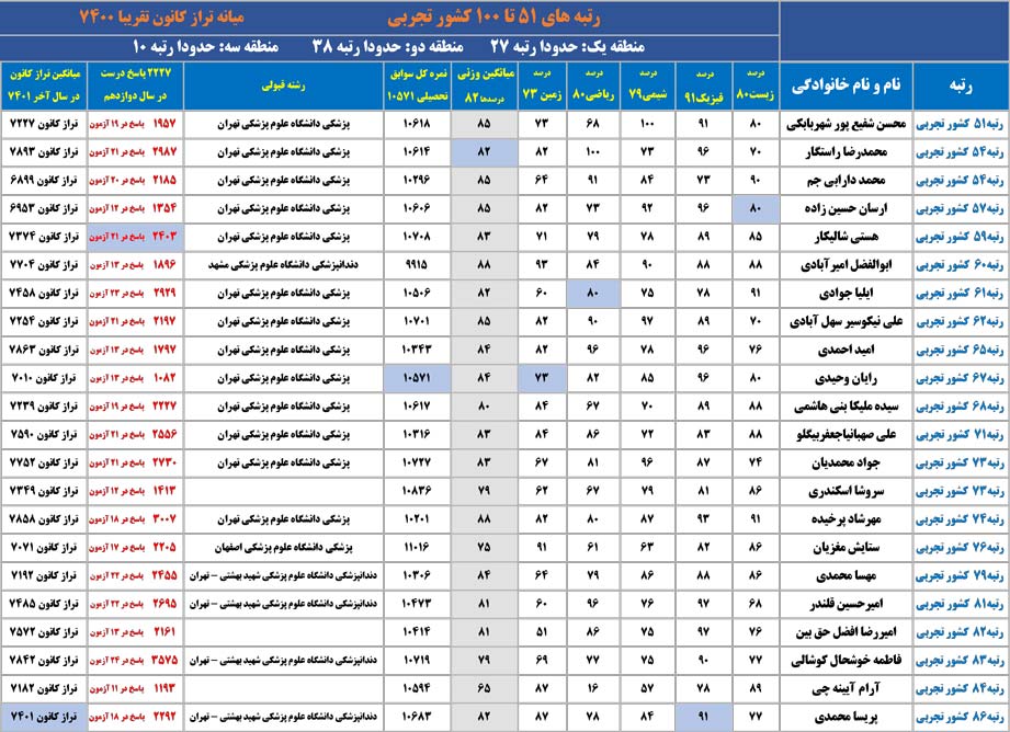 رتبه های زیر 100 کشور در کنکور 1403 چه درصدهایی داشتند و در کدام رشته و دانشگاه قبول شده اند؟ تعداد پاسخ های صحیح در سال دوازدهم چه تعداد بوده است؟