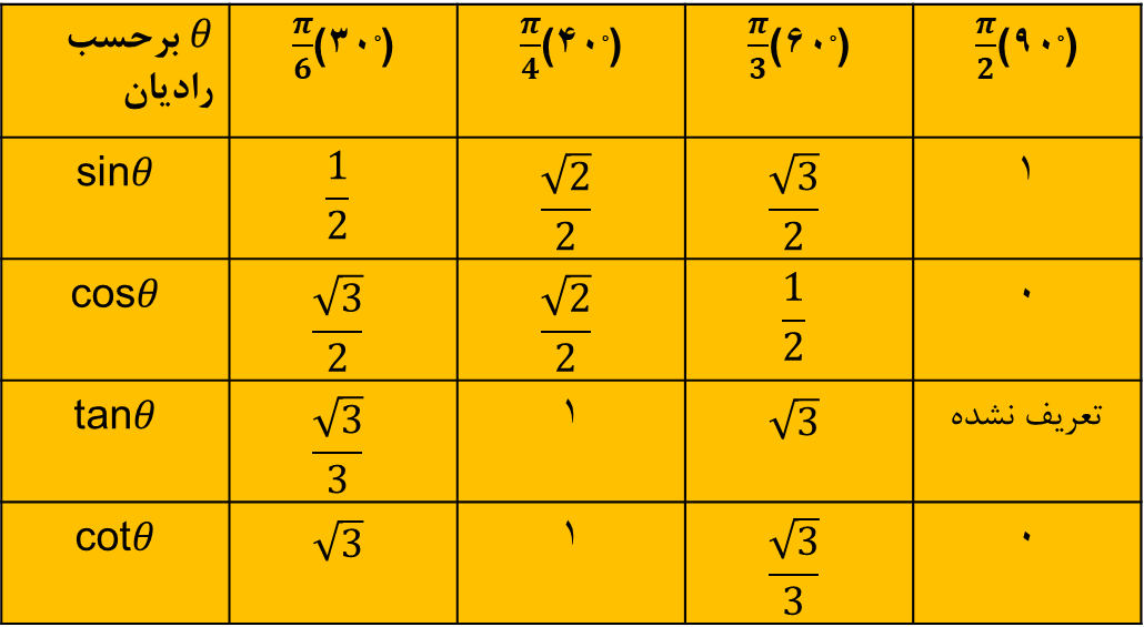 ●اگر زاویه θ برحسب درجه باشد به صورت θo و اگر برحسب رادیان باشد به همان صورت θ نمایش میدهند.