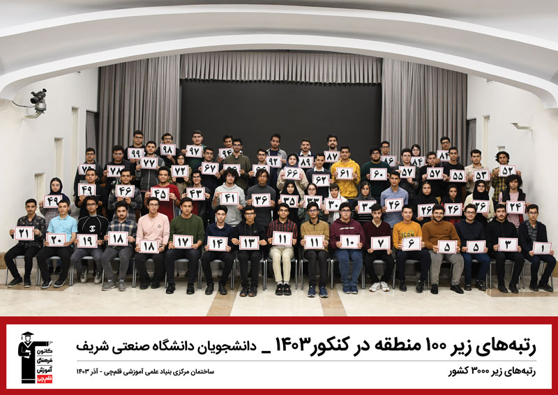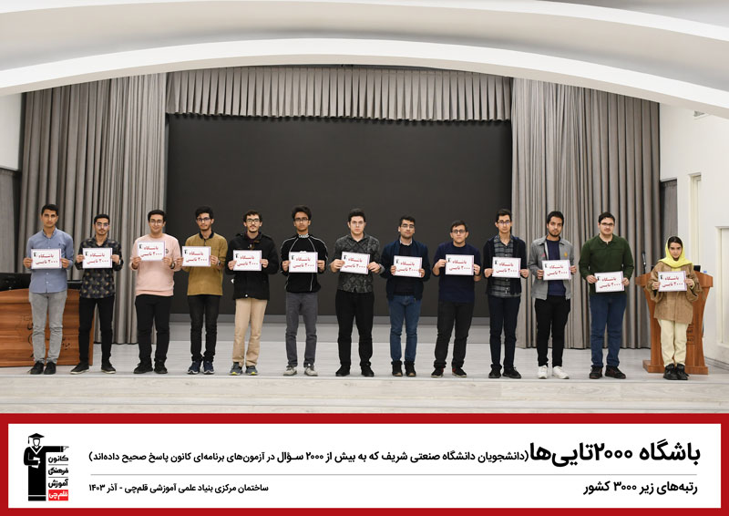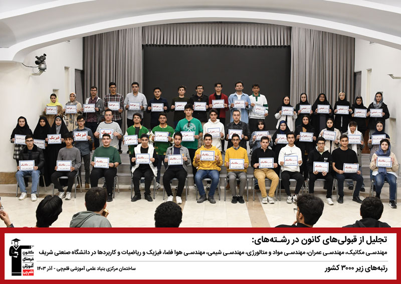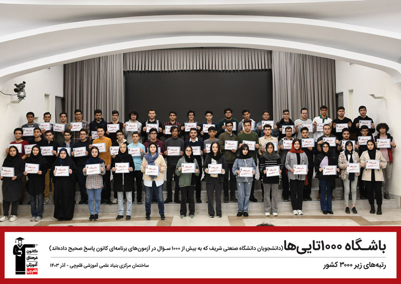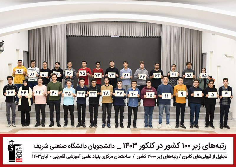 تجلیل از قبولیهای کانون ، رتبه های زیر 3000 کشور در دانشگاه صنعتی شریف 1403 را در ادامه مشاهده می کنید