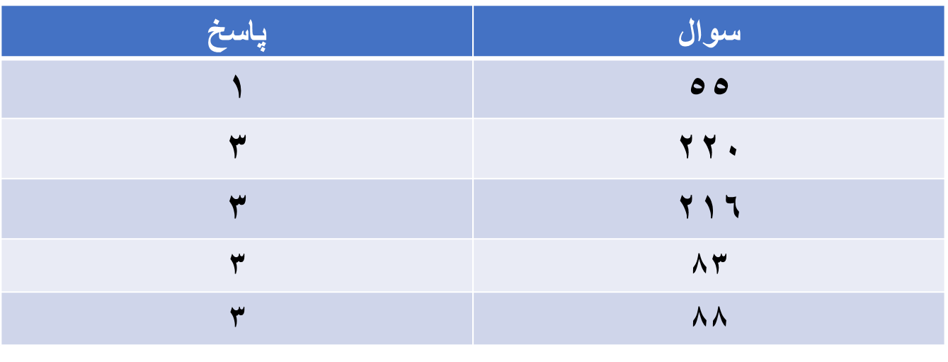 3-پاسخ کلیدی تست ها در انتهای مطلب