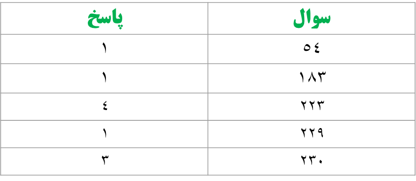 3-پاسخ کلیدی تست ها در انتهای مطلب