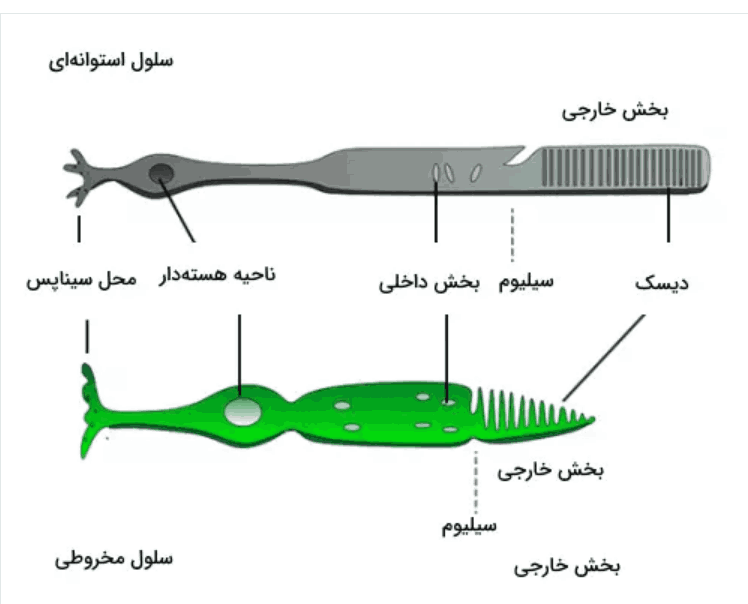 وظیفه سلول های گیرنده نوری: اثر نور را به پیام عصبی تبدیل می کنند و از طریق عصب بینایی به مرکز حس بینایی در قشر مخ می فرستند.