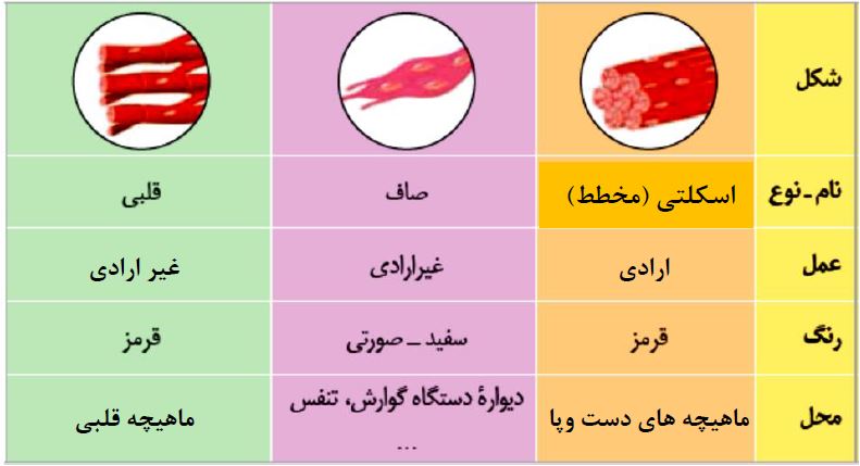 نکته ۷ : وقتی همه سلول ها با هم منقبض می شوند ماهیچه کوتاه بر و ضخیم می شود و چون زردپی آن به استخوان متصل است باعث حرکت آن می شود. | ![]() |