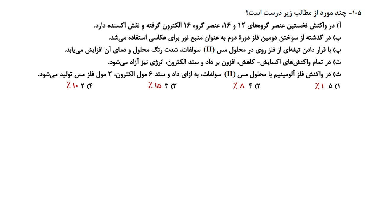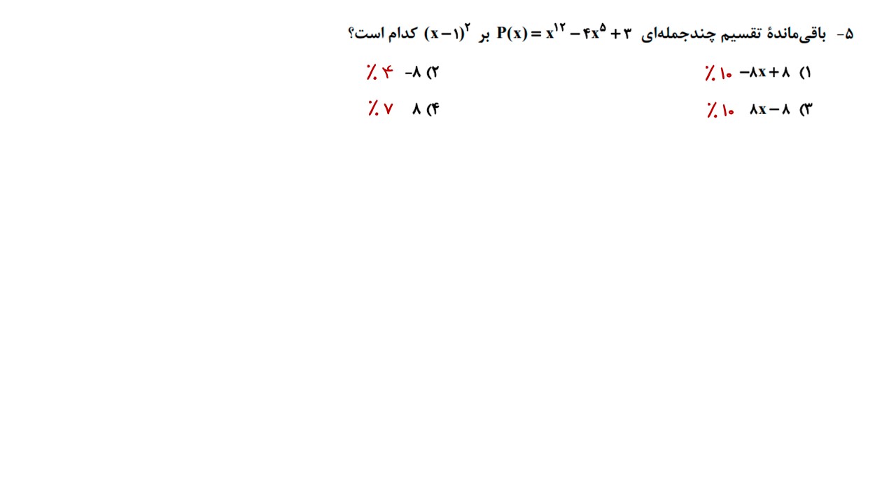 سوالات با بیشترین پاسخ اشتباه آزمون 16 آذر، دوازدهم ریاضی