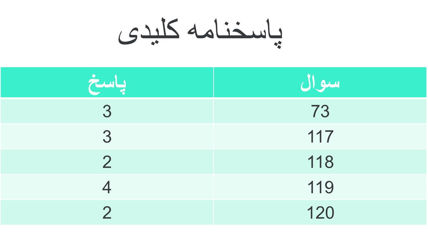 3-پاسخ کلیدی تست ها در انتهای مطلب