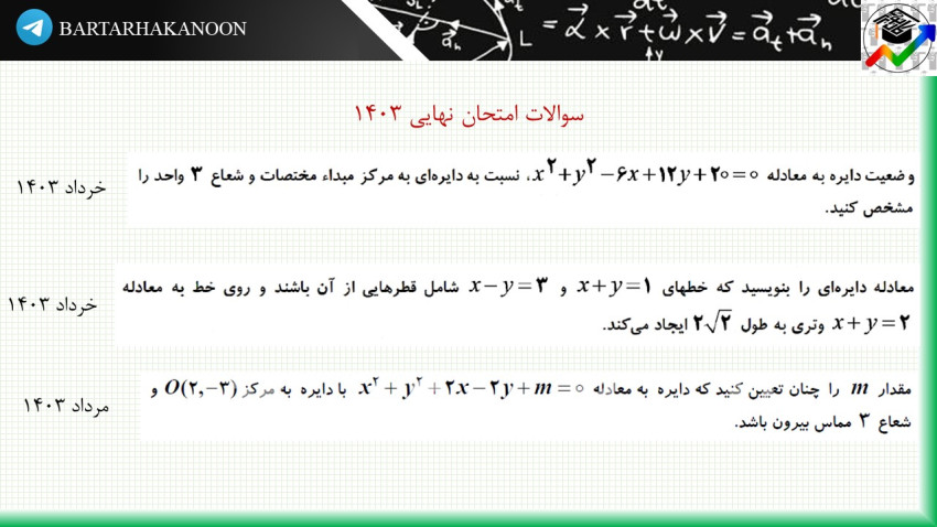 در ابتدای مطلب، پنج سوال از امتحانات نهایی 1403 از این درس قرار گرفته است.