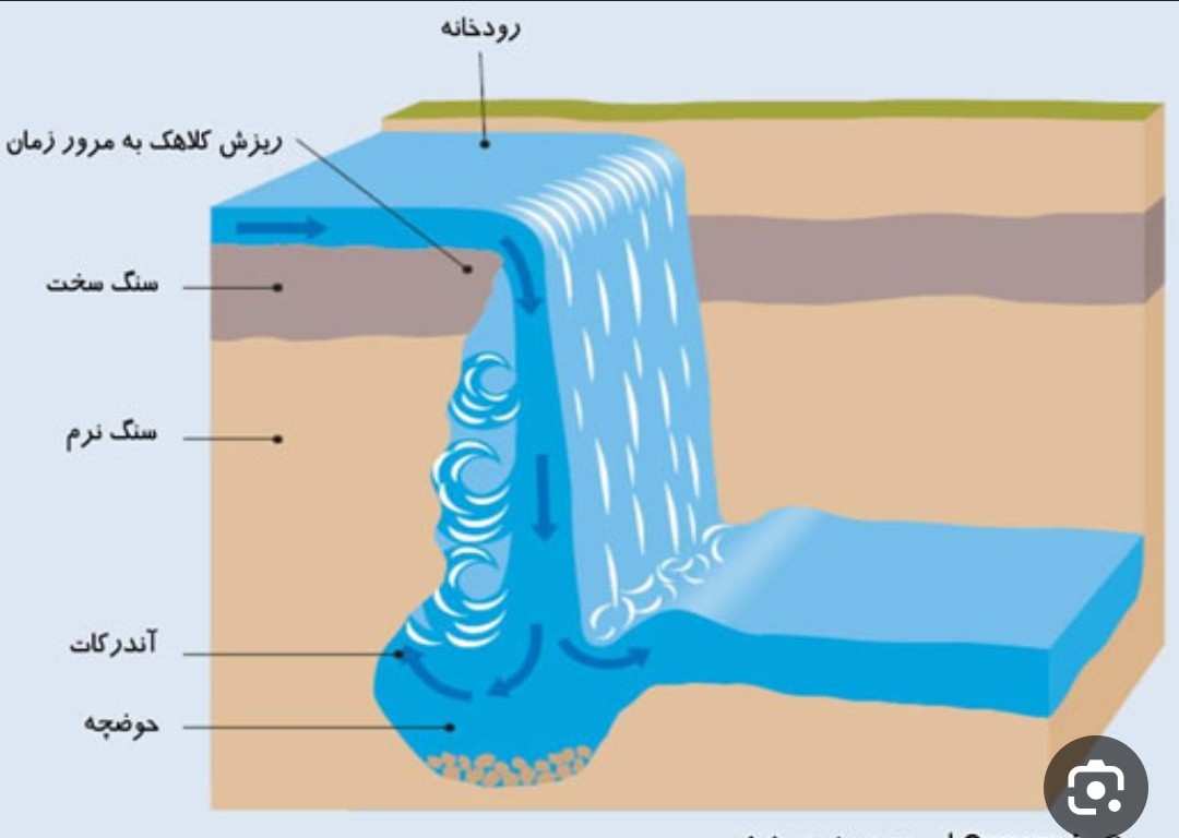 آبشار (تندآب) چگونه تشکیل می گردد؟ آب در مسیر جریان خود ابتدا از سنگ های سخت و مقاوم و سپس از سنگ های نرم و کم مقاومت عبور می کند. بر اثر فرسایش طی مدت طولانی سنگ های مقاوم برجای مانده و سنگ های نرم از بین می رود و اختلاف ارتفاع در مسیر رود بوجود می آید که آبشار (تندآب) نام دارد. | ![]() |