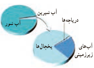 چه مقدار از سطح کره زمین را آب تشکیل می دهد؟ بیش از ۷۵ درصد سطح کره زمین را آب فرا گرفته است که مقدار کمی از آن را آب های شیرین تشکیل می دهند. (97%) آب شور – (3%) آب شیرین) | ![]() |