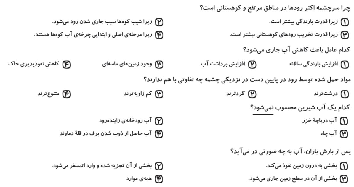 نکته : کمترین آلودگی در رودخانه ها باعث ایجاد مشکلات زیست محیطی می گردد.