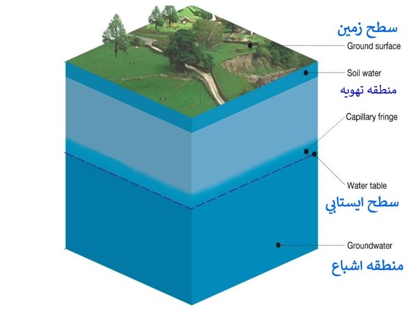 سطح ایستابی: اگر زمین را حفر کنیم به آب های زیر زمینی میرسیم به سطحی که آب های زیر زمینی از آن جا شروع می شود سطح ایستابی گویند.