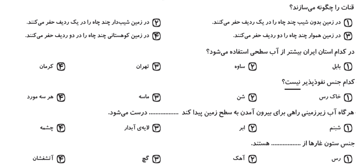 نکته: قنات همیشه در زمین های شیب دار حفر می شود چون در زمین های مسطح امکان حفر قنات وجود ندارد. |