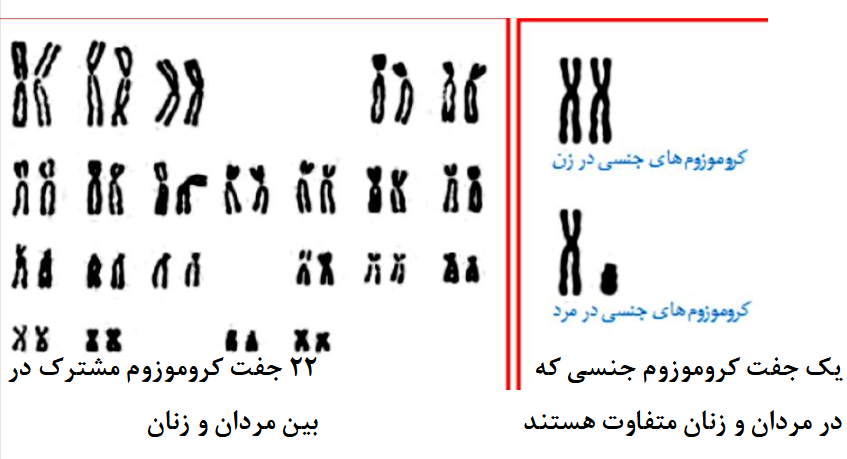 نکته ۵: کروموزوم های جنسی در زن ها مشابه هم هستند ولی در مردها این دو کروموزوم با هم متفاوت هستند.