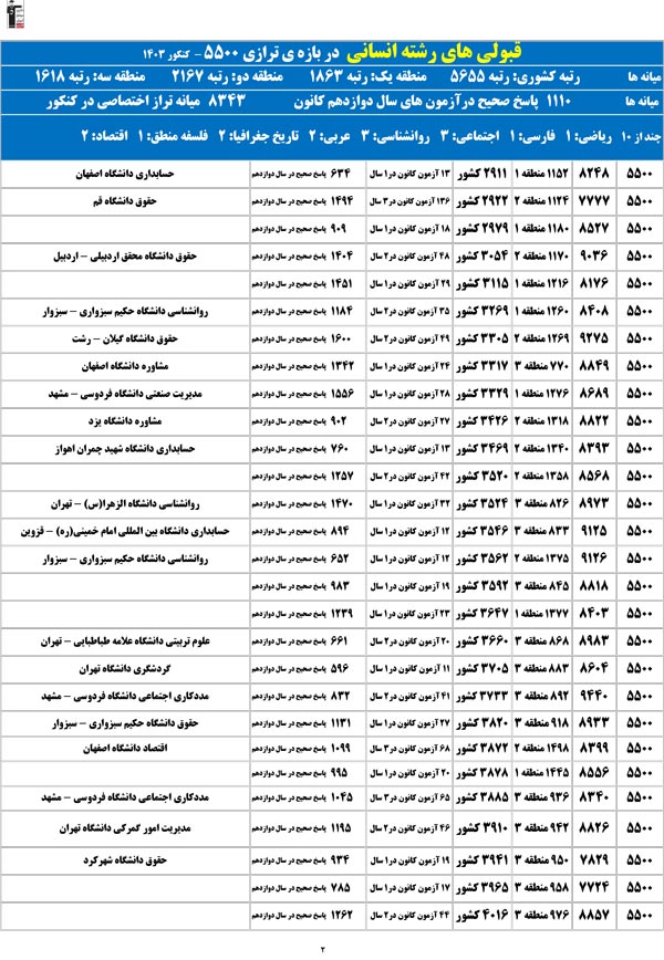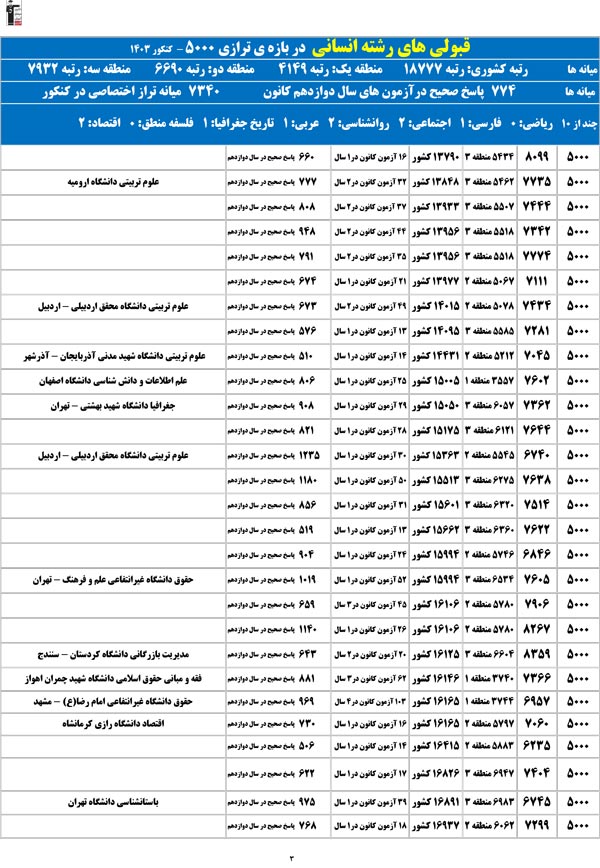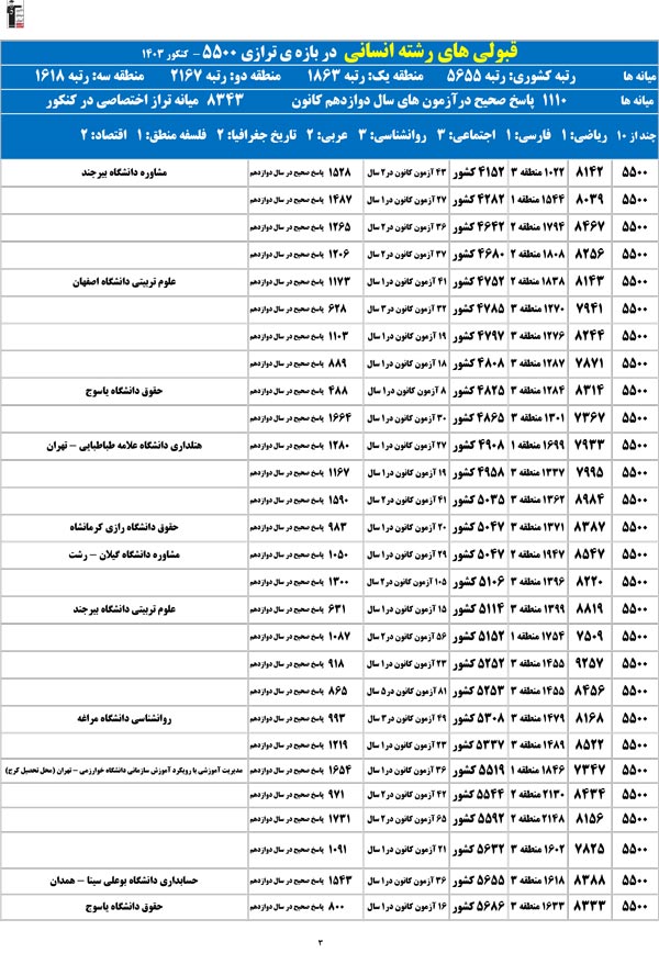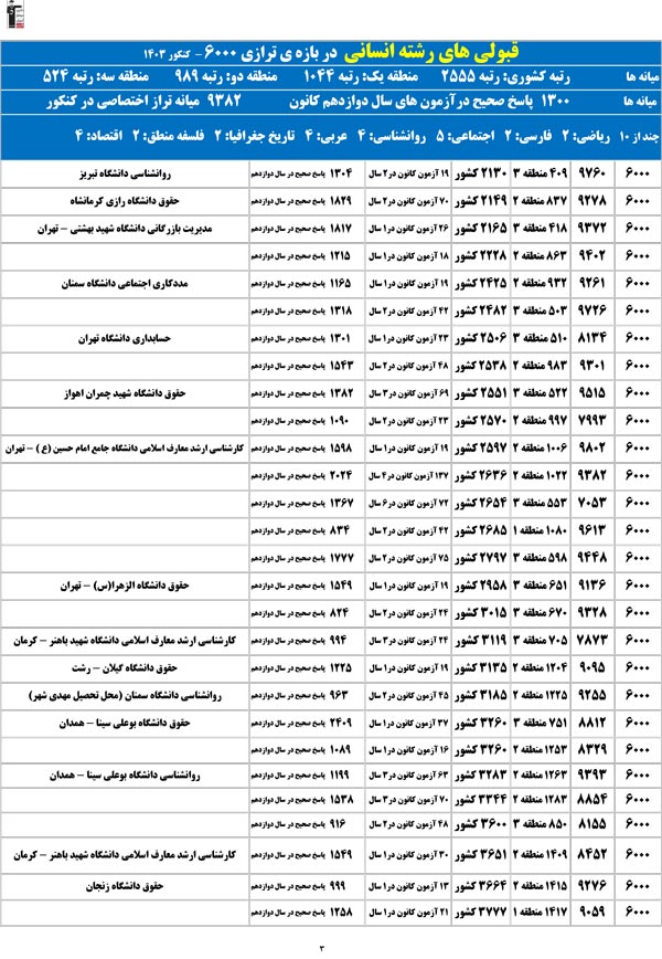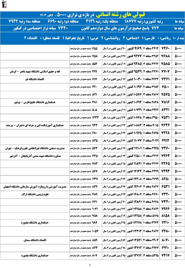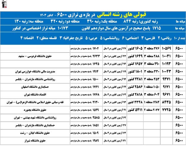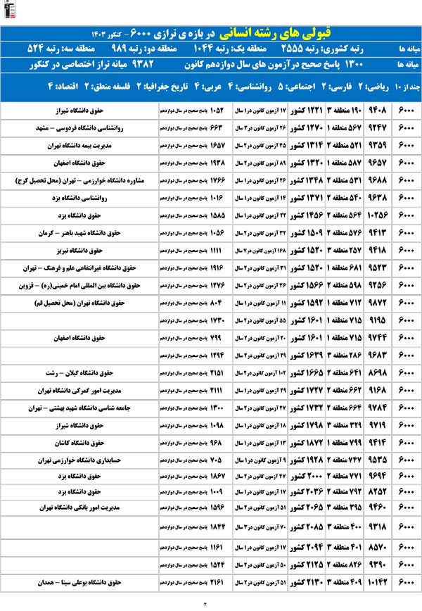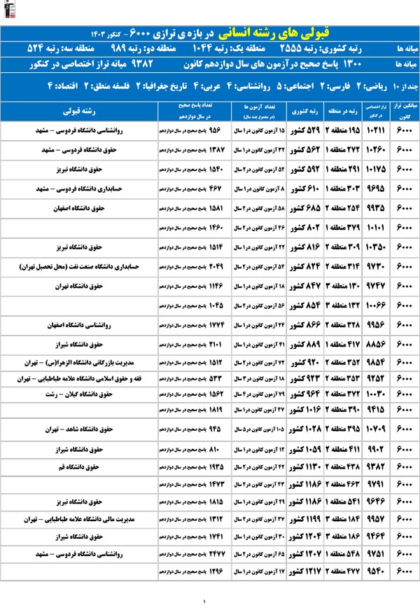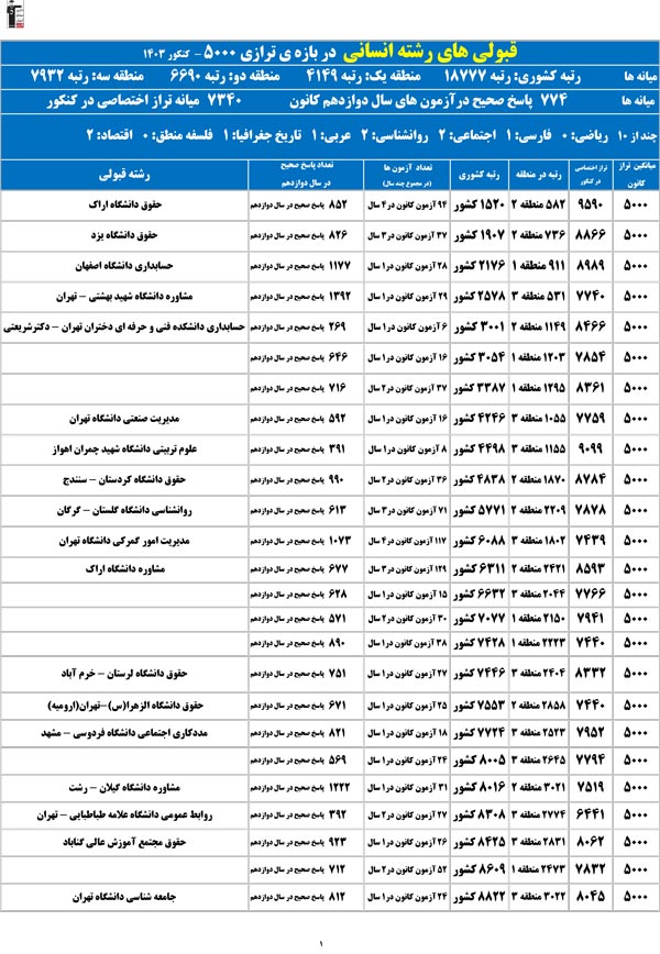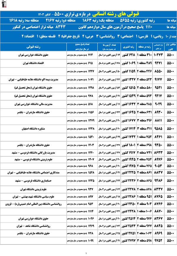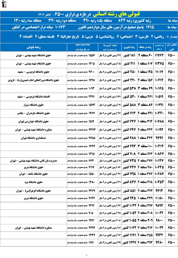 تراز خودتان را در ستون اول پیدا کنید؛ رتبهی احتمالیتان را کشف میکنید و امیدوار میشوید.