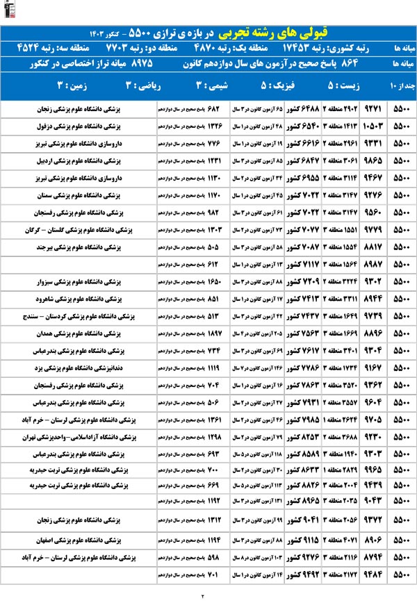 تراز خودتان را در ستون اول پیدا کنید؛ رتبهی احتمالیتان را کشف میکنید و امیدوار میشوید.