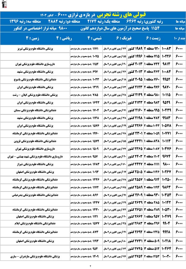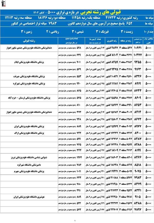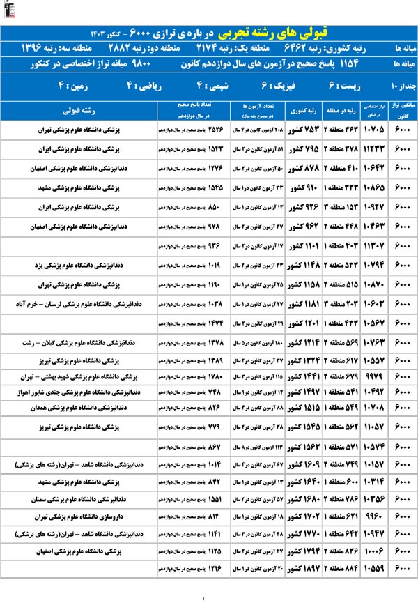 این رتبهها مربوط به دانشآموزان پارسال (1403) است. اگر دانشآموزی مشابه شما در پارسال کنکور داده بود چه نتیجهای میگرفت. نتایج جدول واقعی است اما شما را به خودتان امیدوار میکند.