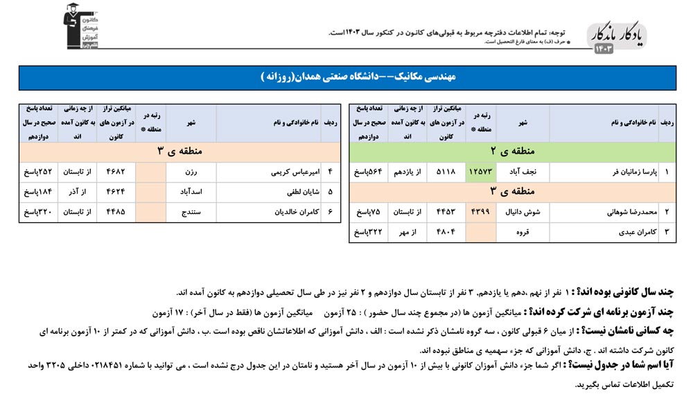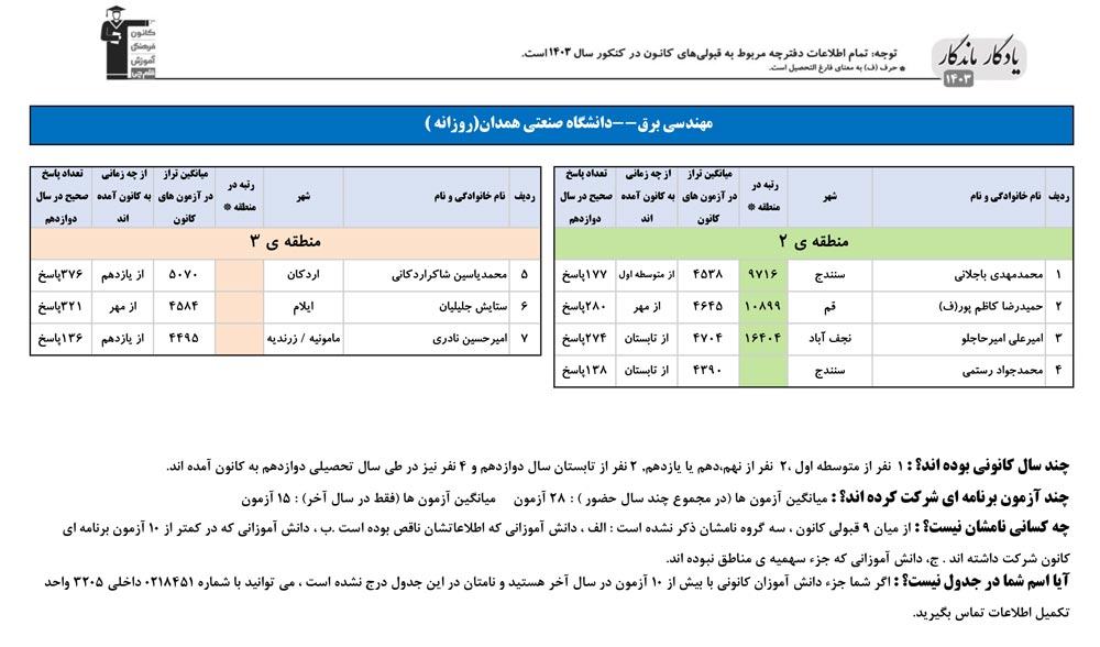 یادگار ماندگار : قبولی های کانونی دانشگاه صنعتی همدان در همه رشته ها در سال 1403 را در ادامه مشاهده کنید.فایل با کیفیت قبولی های سال 1403 را در قسمت فایل های ضمیمه دانلود کنید.