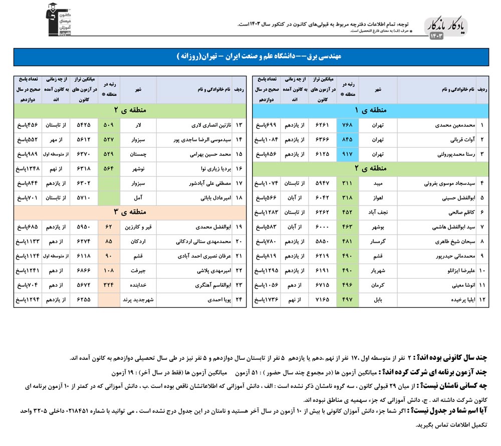 یادگار ماندگار : قبولی های کانونی دانشگاه علم و صنعت ایران در همه رشته ها در سال 1403 را در ادامه مشاهده کنید.فایل با کیفیت قبولی های سال 1403 را در قسمت فایل های ضمیمه دانلود کنید.