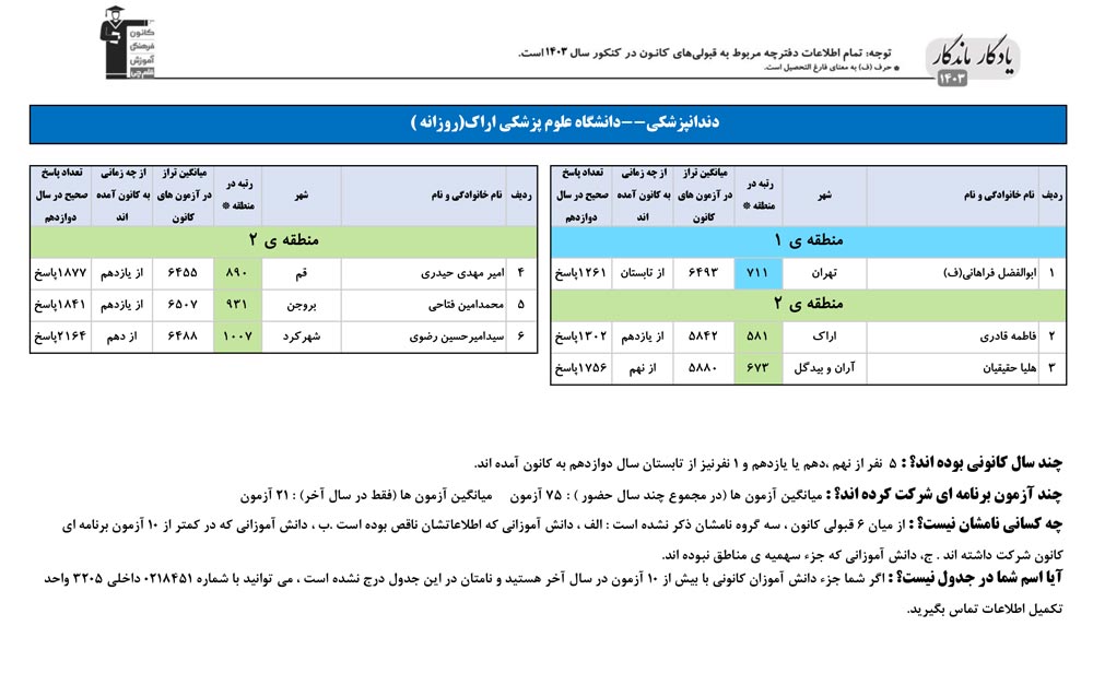 یادگار ماندگار : قبولی های کانونی علوم پزشکی اراک در همه رشته ها در سال 1403 را در ادامه مشاهده کنید.فایل با کیفیت قبولی های سال 1403 را در قسمت فایل های ضمیمه دانلود کنید.