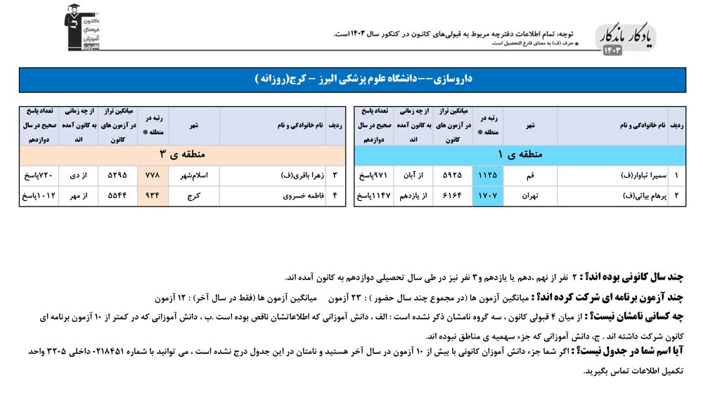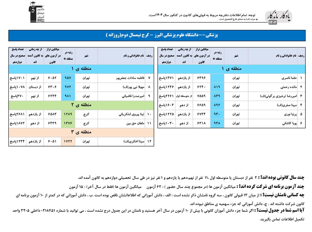 یادگار ماندگار : قبولی های کانونی دانشگاه علوم پزشکي البرز - کرج در همه رشته ها در سال 1403 را در ادامه مشاهده کنید.فایل با کیفیت قبولی های سال 1403 را در قسمت فایل های ضمیمه دانلود کنید.