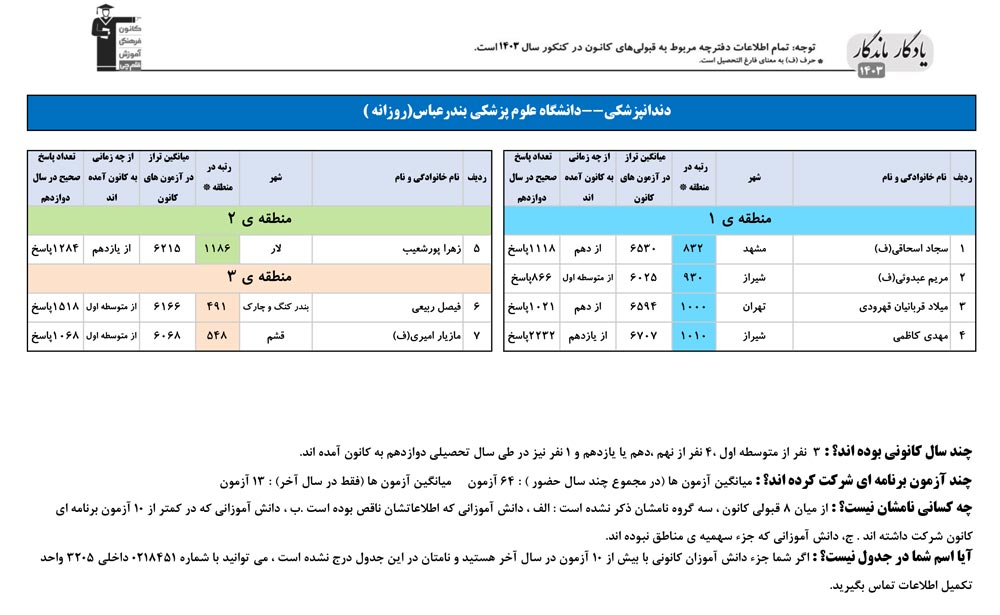 یادگار ماندگار : قبولی های کانونی دانشگاه علوم پزشکی هرمزگان - بندرعباس در همه رشته ها در سال 1403 را در ادامه مشاهده کنید.فایل با کیفیت قبولی های سال 1403 را در قسمت فایل های ضمیمه دانلود کنید.