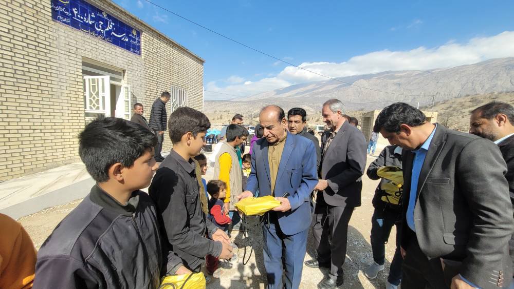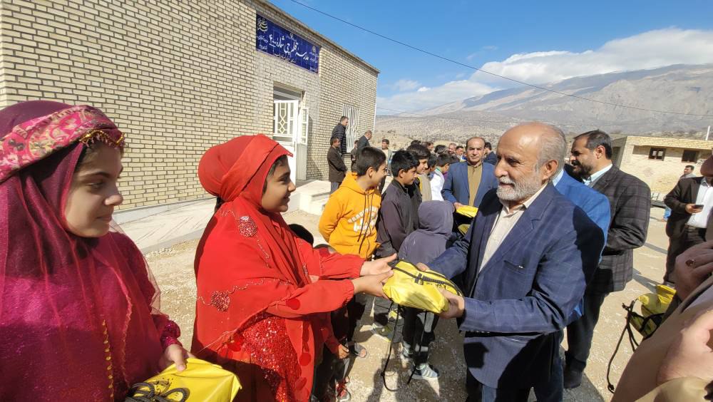 اهدای کیف و لوازم التحریر توسط دریانوش معاون مشارکتهای مردمی نوسازی مدارس کهگیلویه و بویراحمد