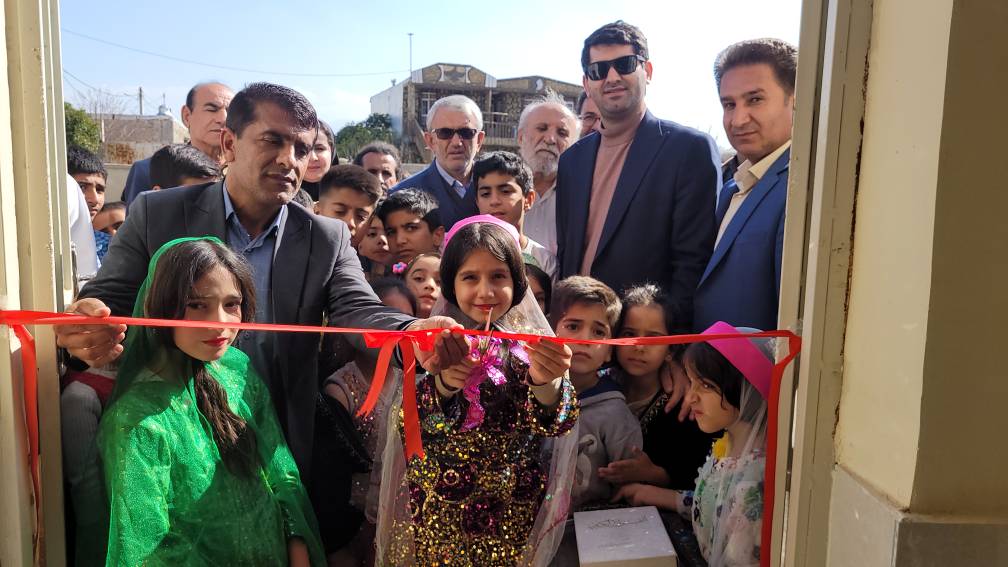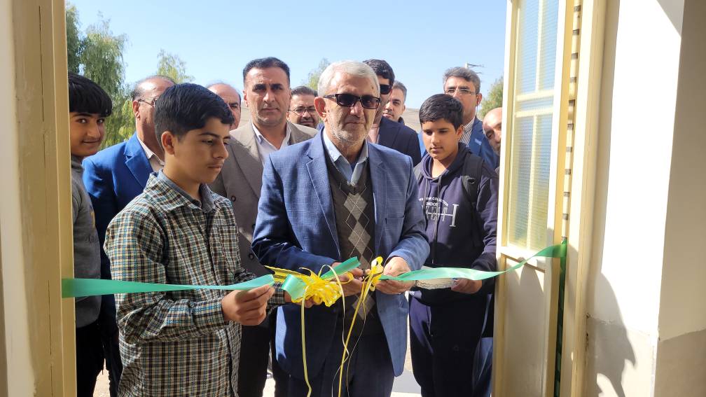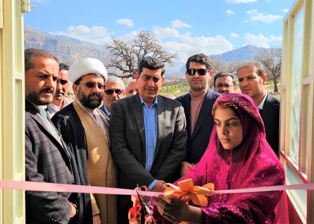 بریدن روبان افتتاح توسط دانشآموز مدرسه و نصرتالله اکابری مسئول نمایندگی چرام