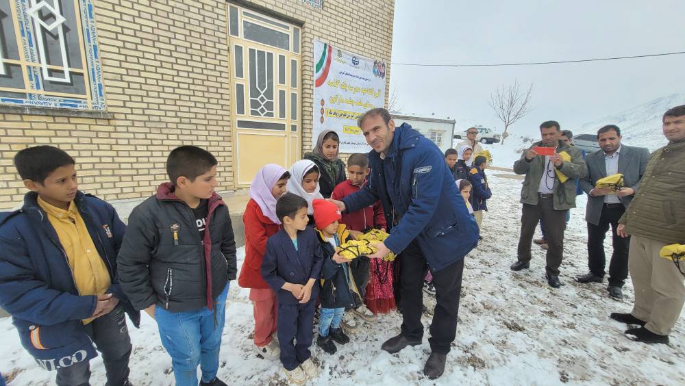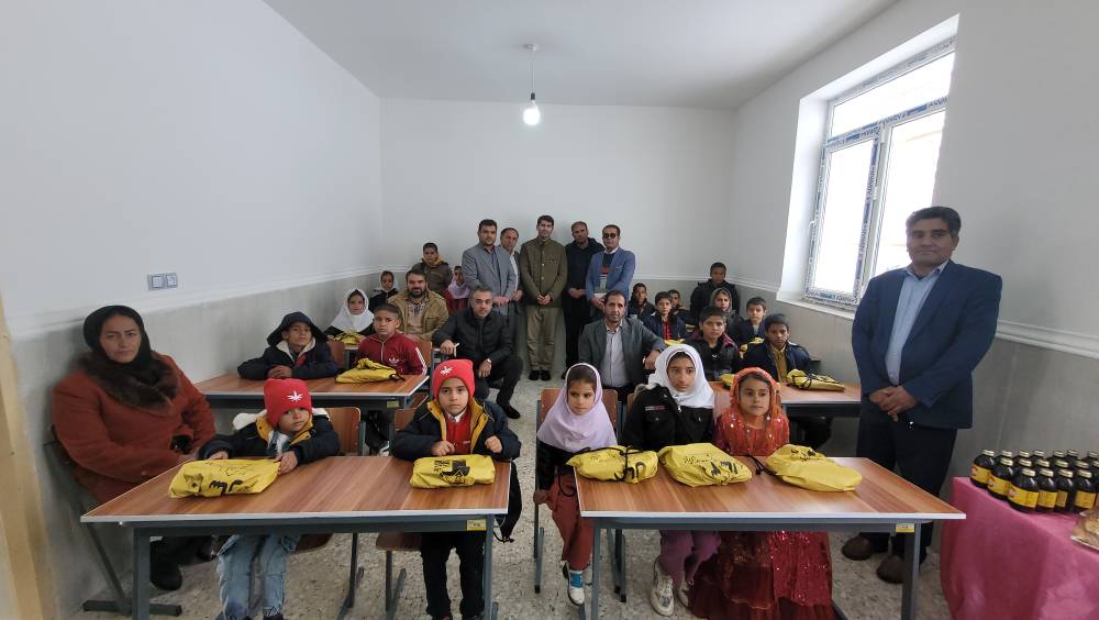 اهدای کیف و لوازم التحریر توسط صابر فتاحی مسئول پروژههای مدرسهسازی