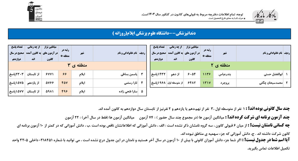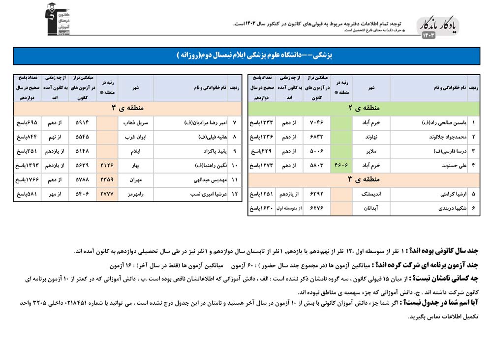 یادگار ماندگار : قبولی های کانونی دانشگاه علوم پزشکی ایلام در همه رشته ها در سال 1403 را در ادامه مشاهده کنید.فایل با کیفیت قبولی های سال 1403 را در قسمت فایل های ضمیمه دانلود کنید.