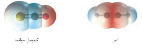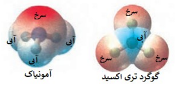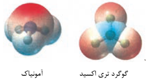 با توجه به نقشه پتانسیل مولکول های آمونیاک و گوگرد تری اکسید به پرسش ها پاسخ دهید.