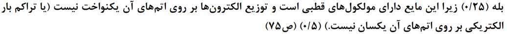 ب)آیا این مولکول در میدان الکتریکی جهت گیری می کند؟ چرا؟