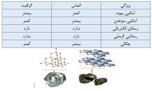 چگالی الماس و گرافیت هر دو از آب بیشتر می باشد.