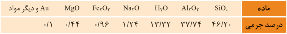 درصد جرمی مواد سازندۀ نوعی خاک رس