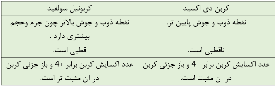 در کربونیل سولفید در پیوند C=S توزیع الکترون بین دو اتم گوگرد و کربن تقریبا یکسان است و پیوند کووالانسی پیوند ناقطبی است. C=O یک پیوند قطبی است.
