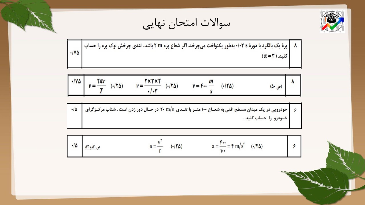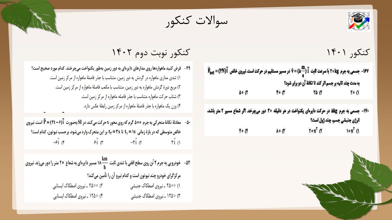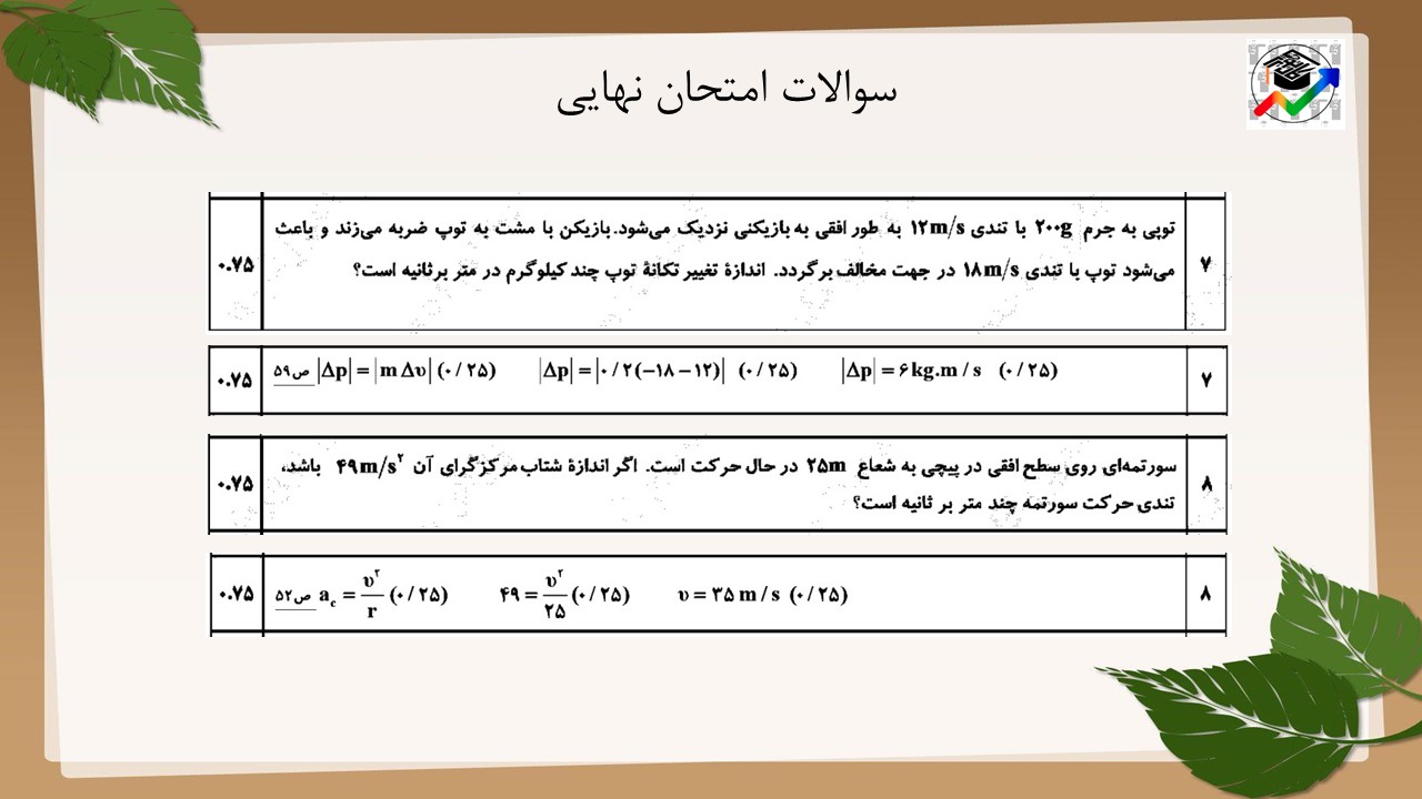 در ابتدا سوالاتی که از این بخش از فصل دینامیک در امتحان نهایی آمده است را میبینیم.