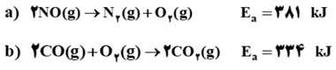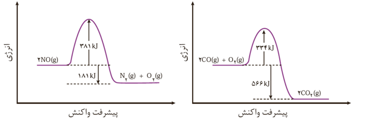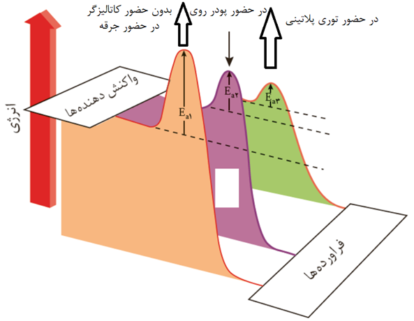 مقدار گرمای آزاد شده از واکنش حذف آلاینده CO بیشتر از حذف آلاینده NO است ولی انرژی فعال سازی واکنش حذف آلاینده NO بیشتر است، بنابراین سرعت آن کمتر است.
