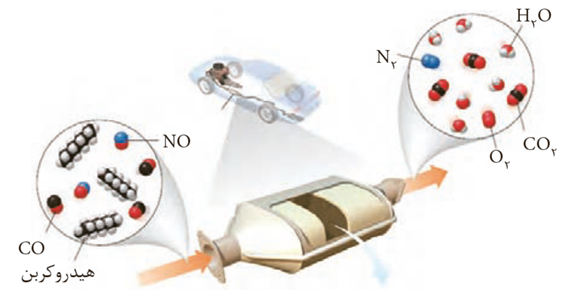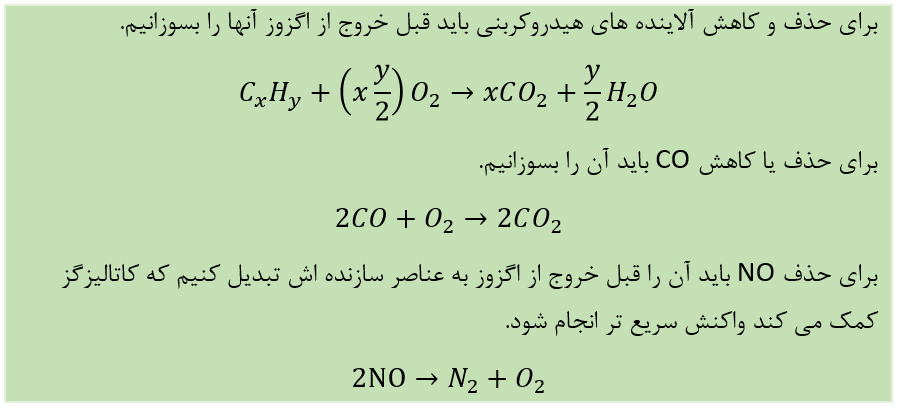 واکنش های زیر در فرایند حذف آلاینده های موجود در اگزوز خودرو ها انجام می شوند.