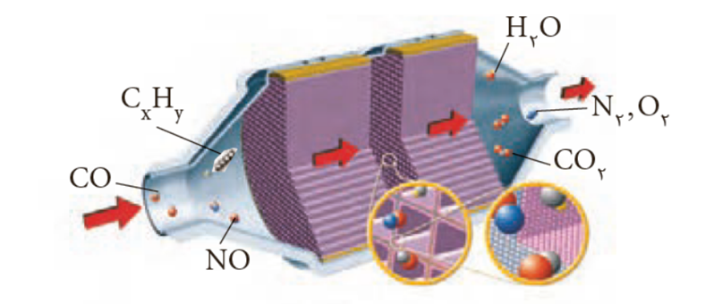 درسطح سرامیک های درون مبدل کاتالیستی، توده های فلزی با قطر 2 تا 10 نانومتر وجود دارند.
