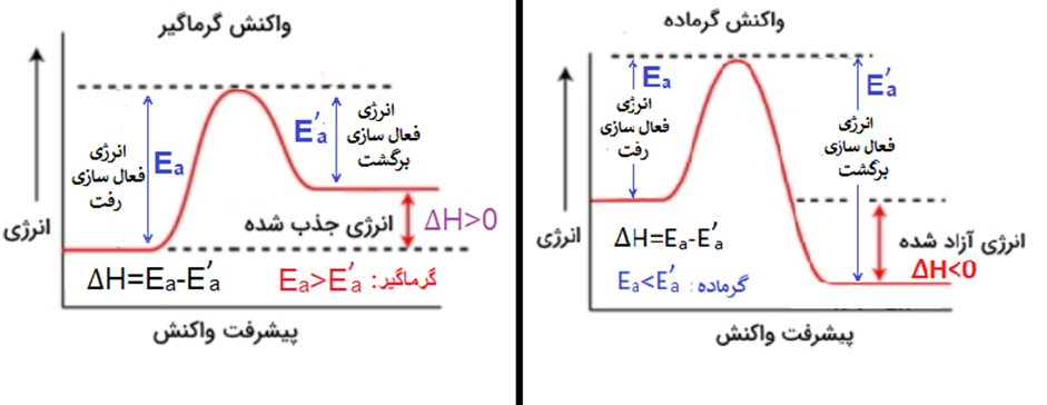 در واکنش های گرماگیر انرژی فعال سازی واکنش رفت از انرژی فعال سازی واکنش برگشت بیشتر است. و سرعت رفت از سرعت برگشت کم تر است زیرا واکنش رفت دارای انرژی فعال سازی بزرگ تر است.