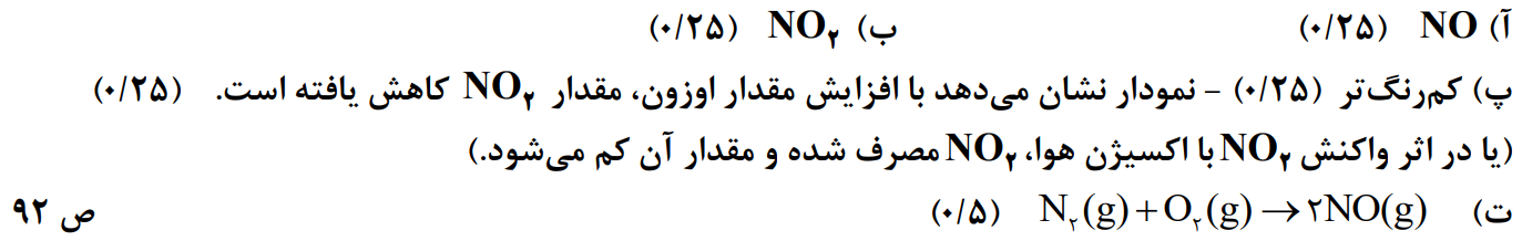 پ)با افزایش غلظت اوزون، رنگ هوای آلوده کم رنگ تر یا پر رنگ تر می شود؟ توضیح دهید.