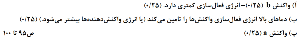 ب)چرا با افزایش دما سرعت این واکنش ها بیشتر می شود؟