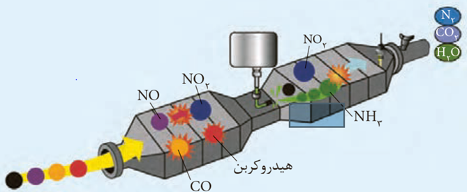 چون در واکنش ها گاز آمونیاک مصرف می شود پس می توان گفت تعداد اتم های نیتروژن خارج شده از اگزوز خودرو دیزلی بیشتر از تعداد اتم های نیتروژن خارج شده از موتور خودرو است.